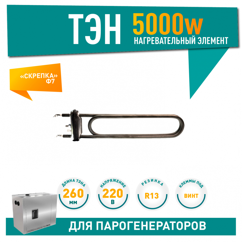ТЭН для парогенераторов Harvia 5000W ИТАТЭН, L260мм, клеммы под винт, 220V (365-ZG HTS036HR), 21365