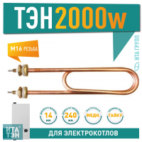 Подойдет для установки в бочку под душ и т.д. Мощность ТЭНа составляет 2000 Вт, что соответствует техническим требованиям совместимых с запчастью моделей различных бытовых устройств. Длина рабочего тела соответствует 240 мм.