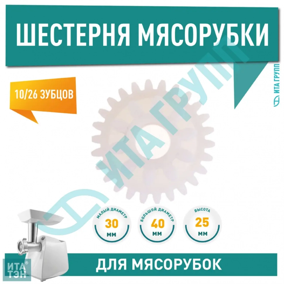 Малая шестерня для мясорубки Kenwood, DeLonghi, D40мм, 26/10 зубьев, h1098
